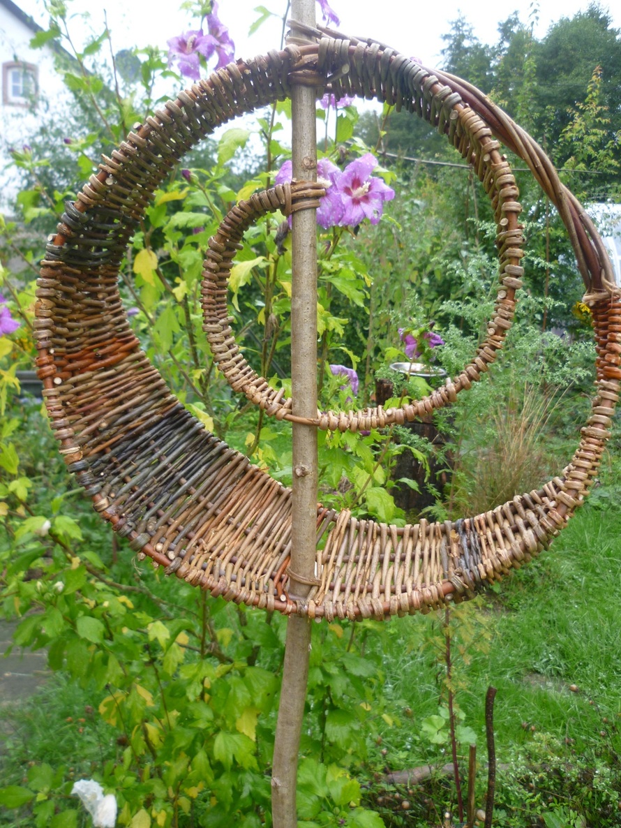 In diesem Kurs erstellst du mit der einfachen Webtechnik ein abstraktes Weidenschneckenhäuschen, das an einem Stab befestigt ist.